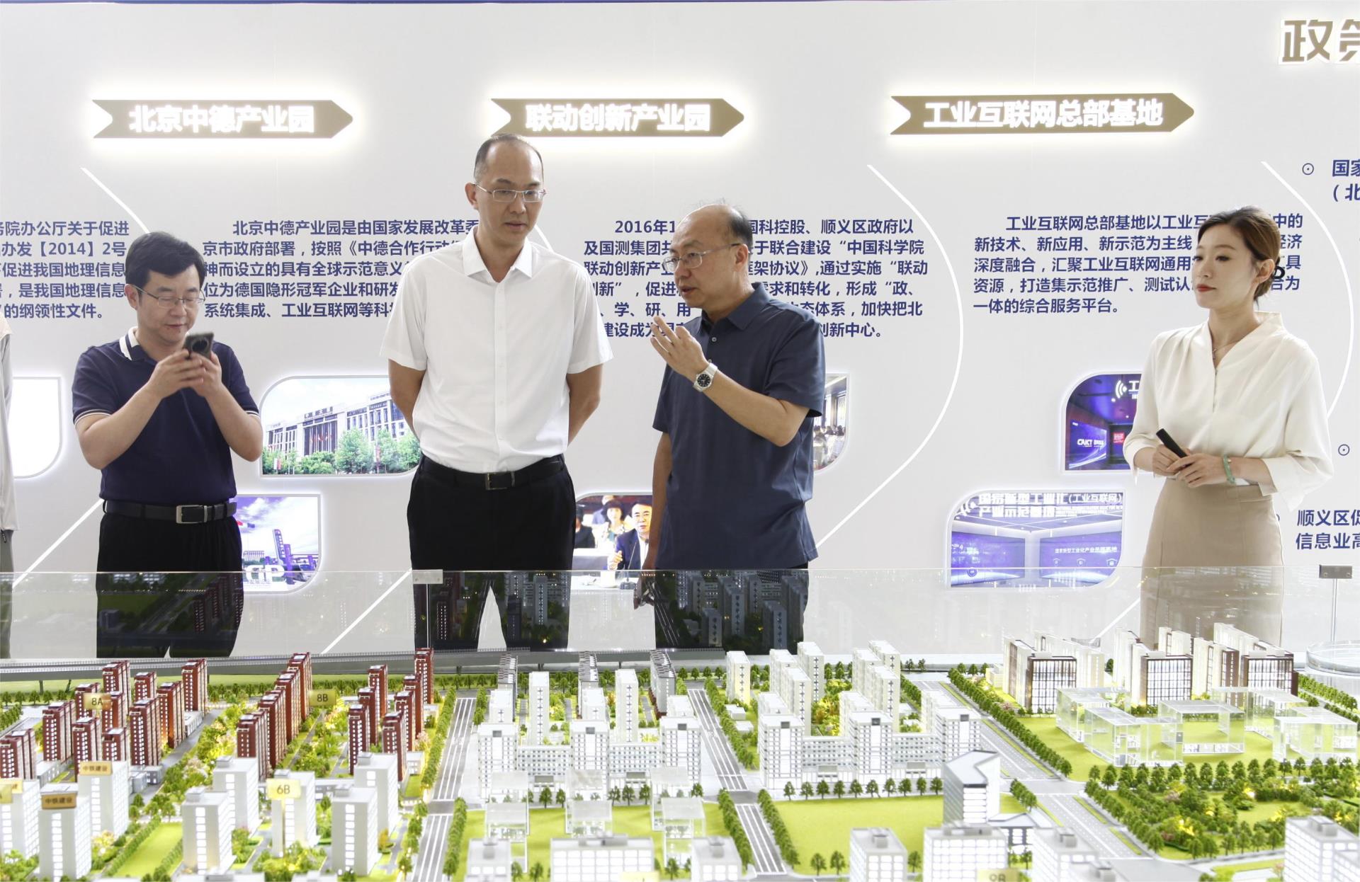 7月31日大会闭幕后,中国青年企业家协会会长,中国电信集团有限公司副总经理、党组成员李峻,中国青年企业家协会秘书长刘钢一行参观了集团展厅。集团总裁栾辉接待了李峻会长一行介绍国家地理信息科技产业园的发展规划、建设进度、发展前景和入驻企业情况。